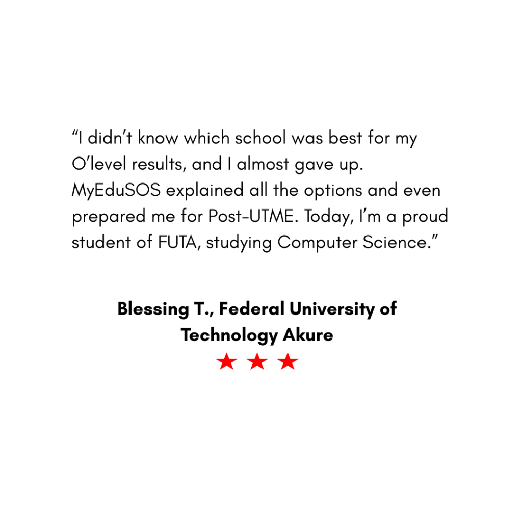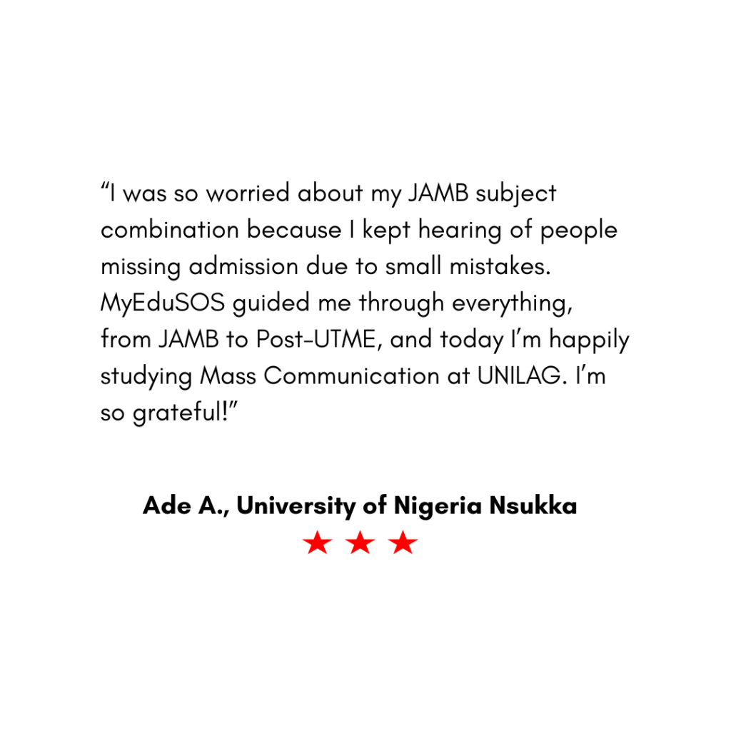 At MyEduSOS, we provide step-by-step admission help to guide you with clarity, confidence, and expert support. If you’re applying through JAMB, direct entry, or need help understanding admission requirements, we’re here to make the journey easier.